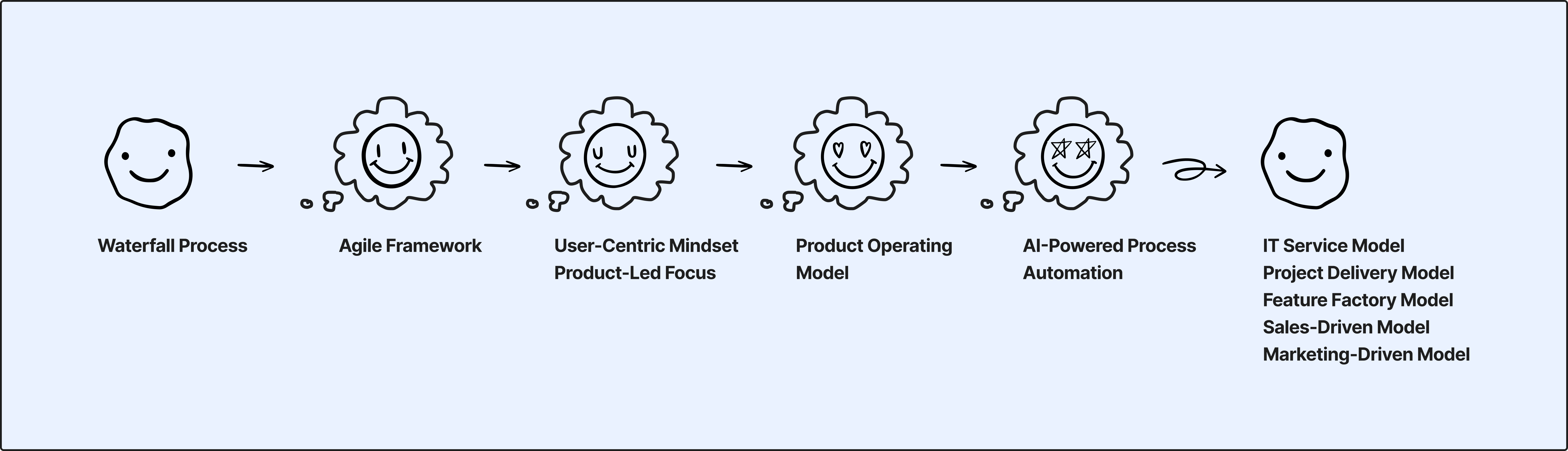 Modelos de Servicio de IT, donde producto y tecnología están al servicio de las peticiones del negocio y las operaciones.